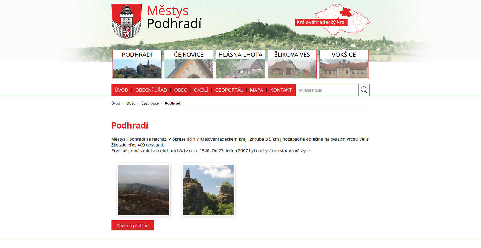 Úvod > Reference > Obce a města > Městys Podhradí